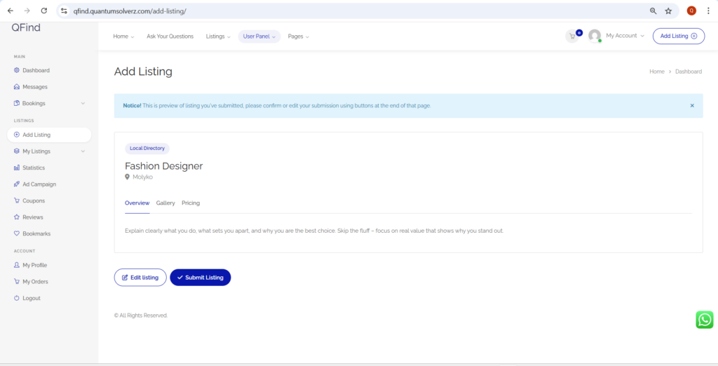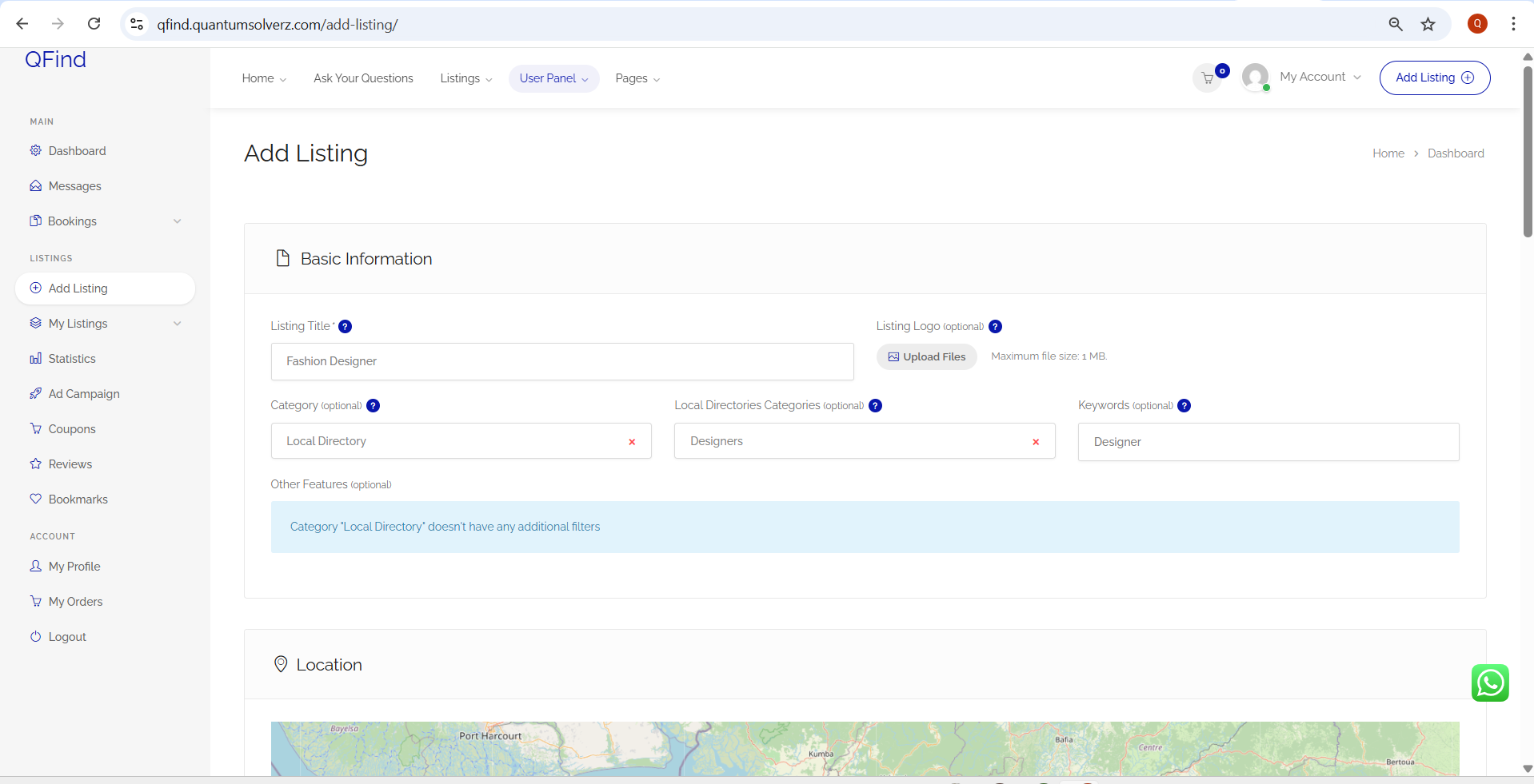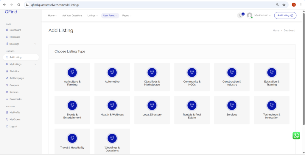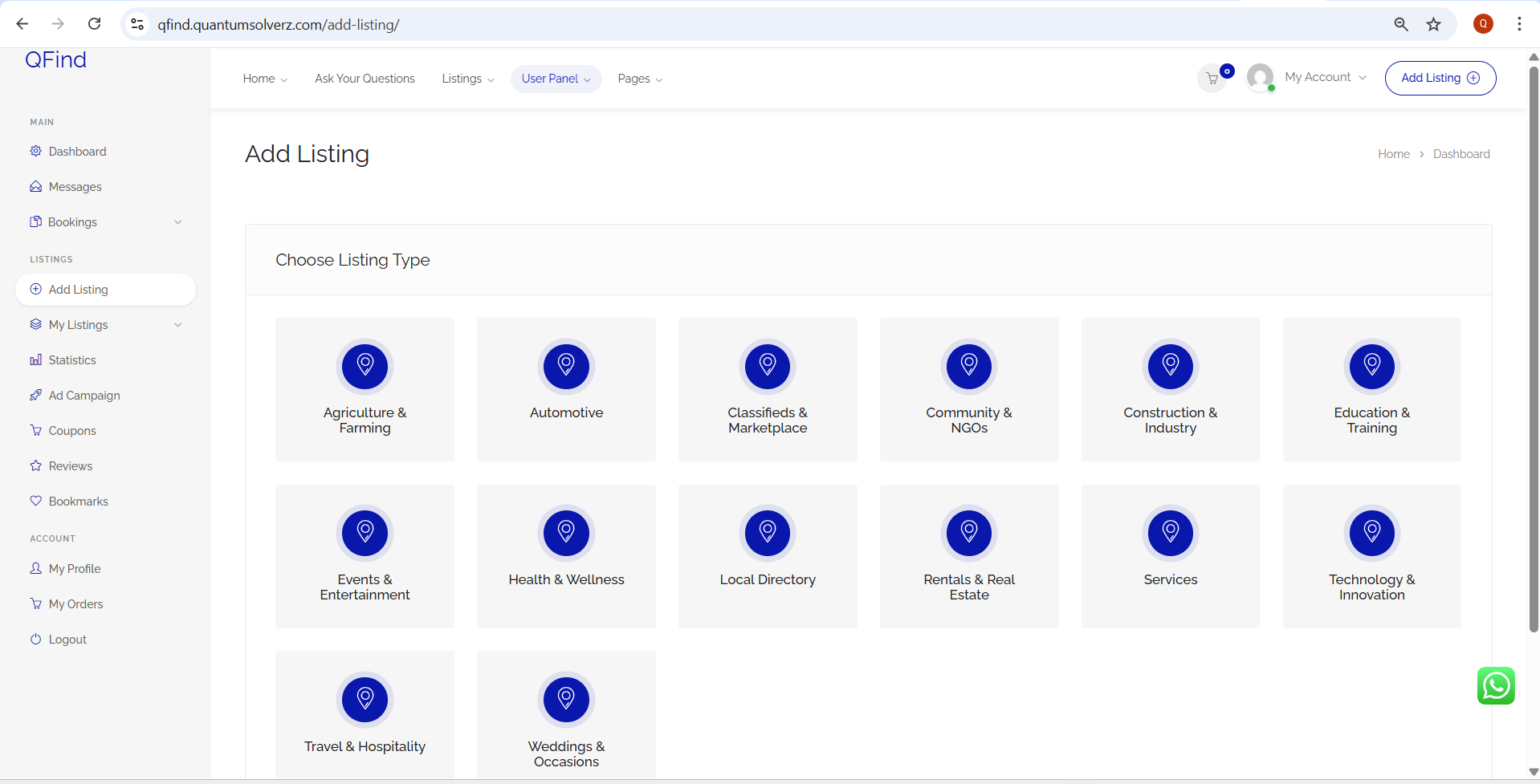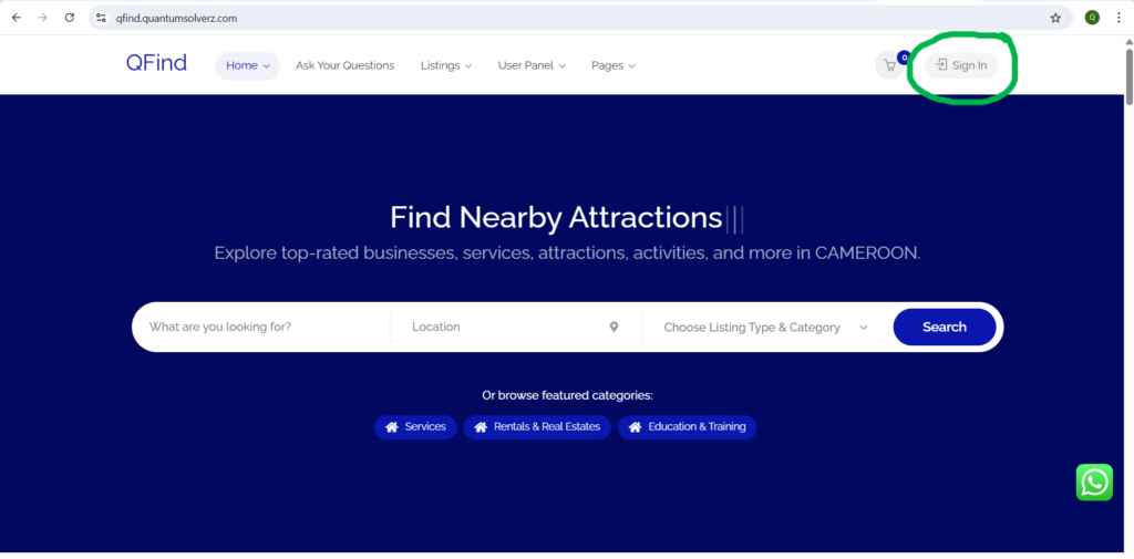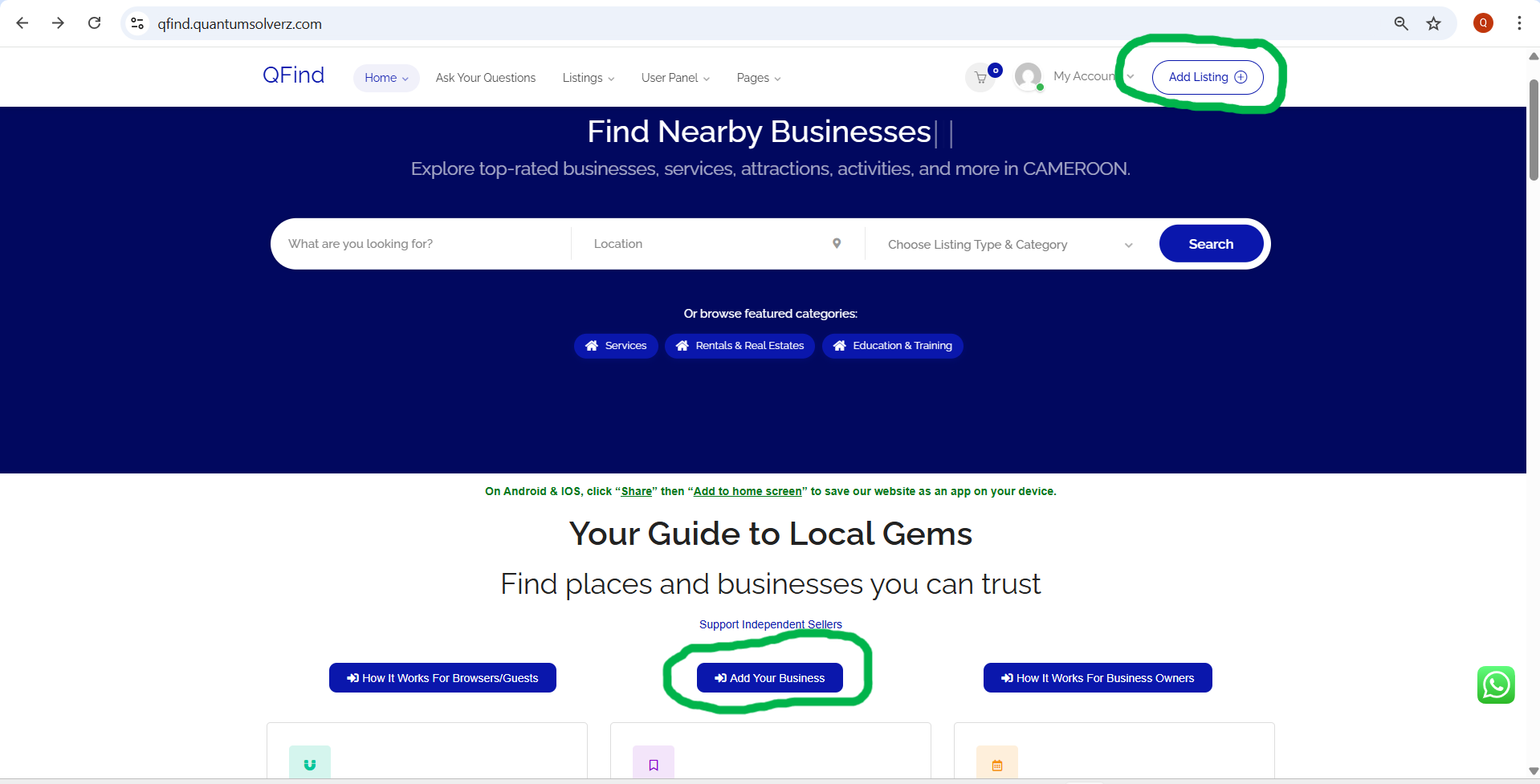 6. Once you are logged in, click on Add Listing or Add Your Business.